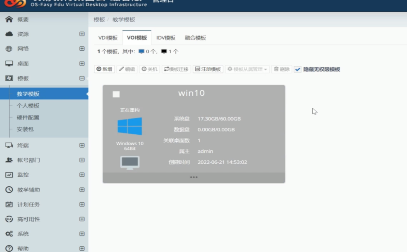5.点击系统任务中的VOI图标,选择更新模板