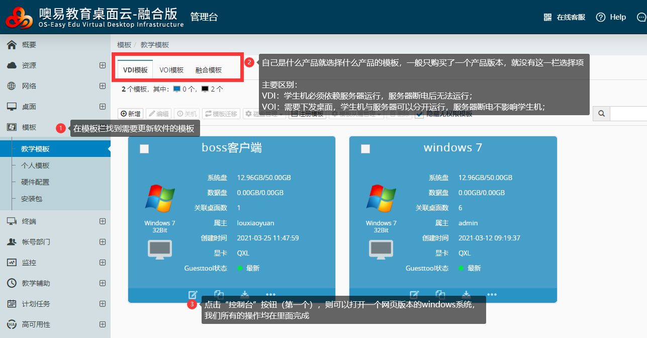 用户需要更新模板,本方法适用于VDI和VOI的模板更新