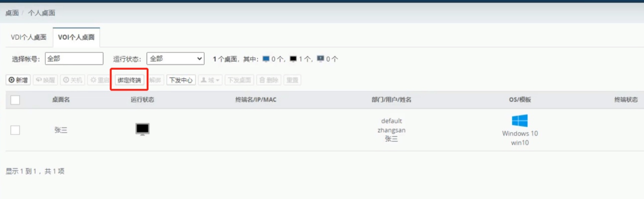 4.选择需要与个人桌面绑定的账号,确认后点击完成后等待个人桌面创建完成即可