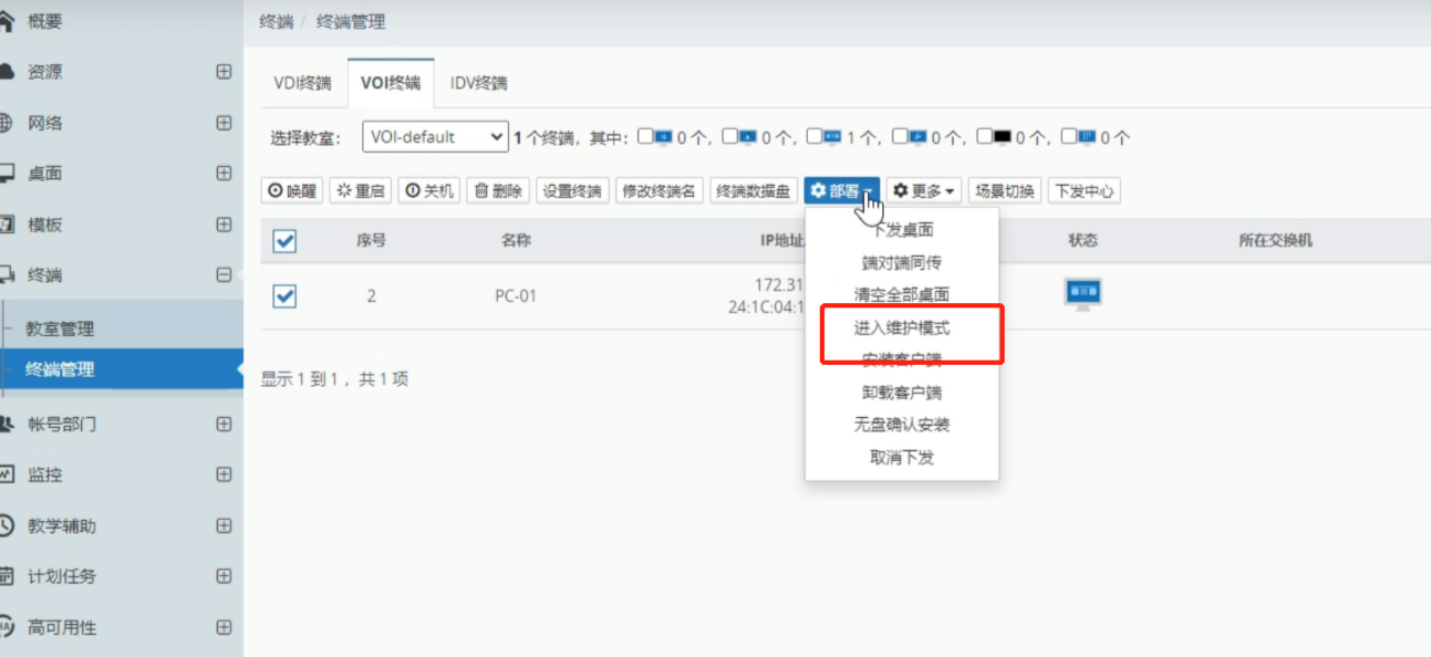 8.勾选需要下发桌面的终端,开机进入维护模式