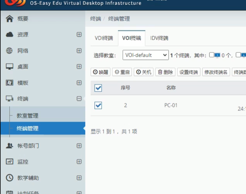 9.待终端状态出现扳手图标时,表示已进入维护模式,点击桌面选择个人桌面,选择VOI桌面