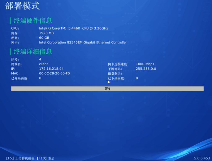 4.该终端连入默认教室中,在终端管理/该默认教室/部署功能中执行安装客户端(安装客户端时分配的IP确保是能和服务器能正常通信的IP段)