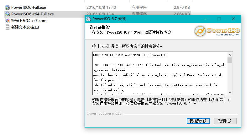 2.下载PowerISO工具,将这个链接复制到浏览器打开(https://wwx.lanzoui.com/i8vvnl4ccti)双击X64的开始安装,安装步骤直接下一步,我接受即可。
