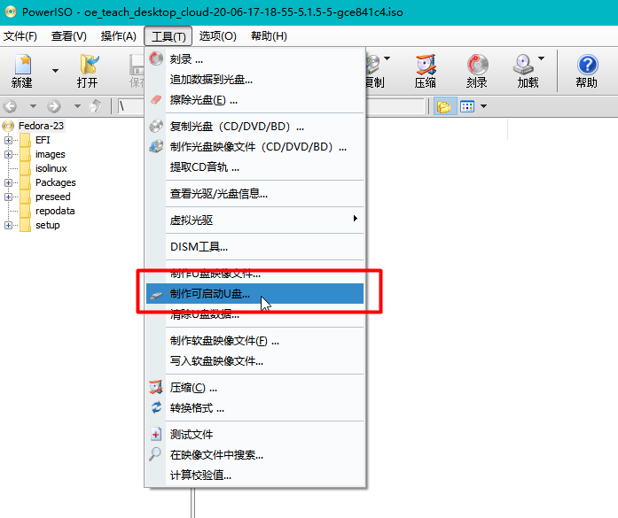 4.打开后选择工具,选择制作可启动U盘,会提示需要管理员权限,点击确定。