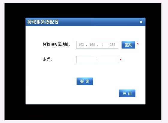 1.打开教师机上的多媒体软件,点击钥匙图标,点击授权服务器配置。