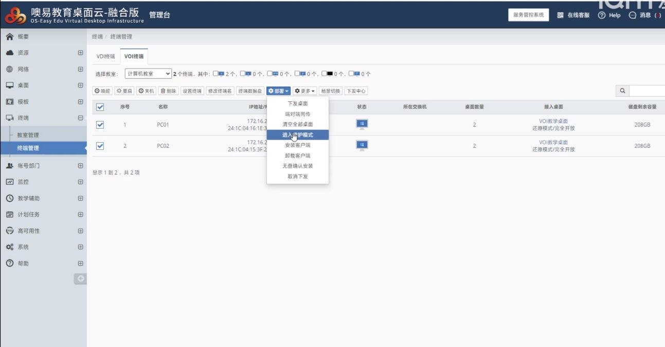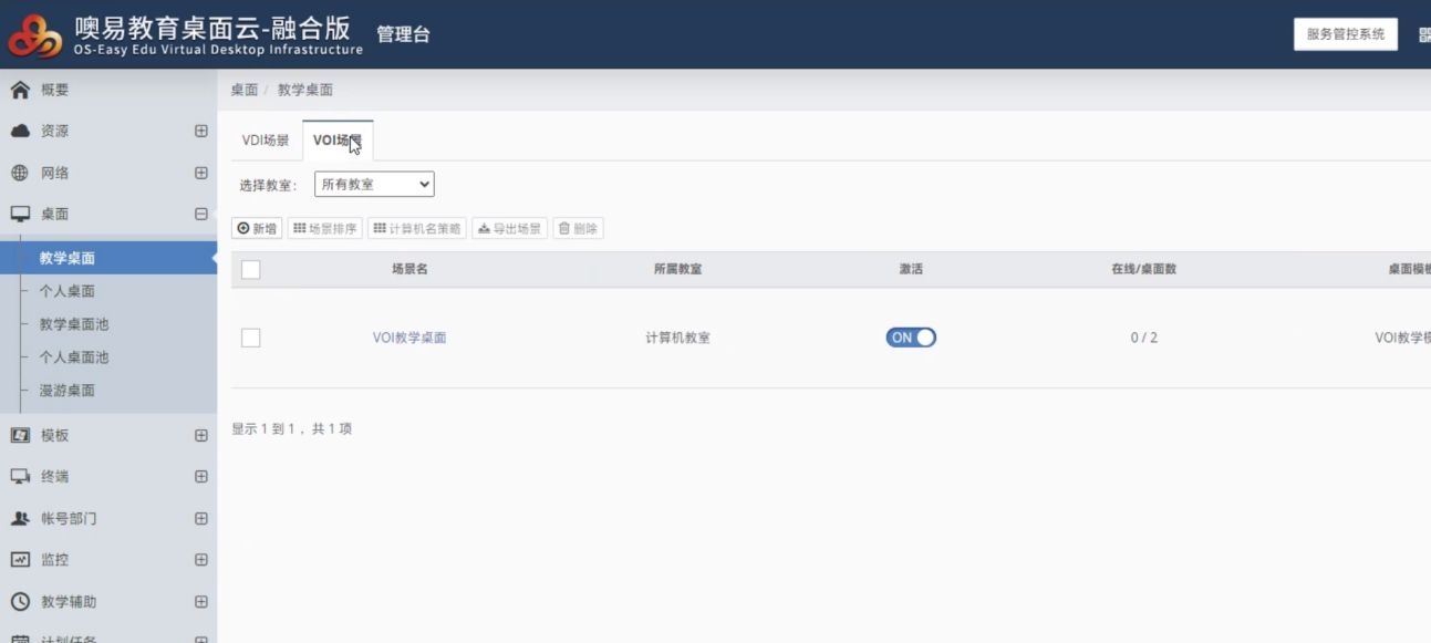3.进入维护模式后,点击菜单栏中的桌面——教学桌面,选择VOI场景