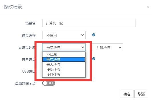 示例:计算机一组教学场景设置的【每次还原】,现在的需求是设置“按周还原”