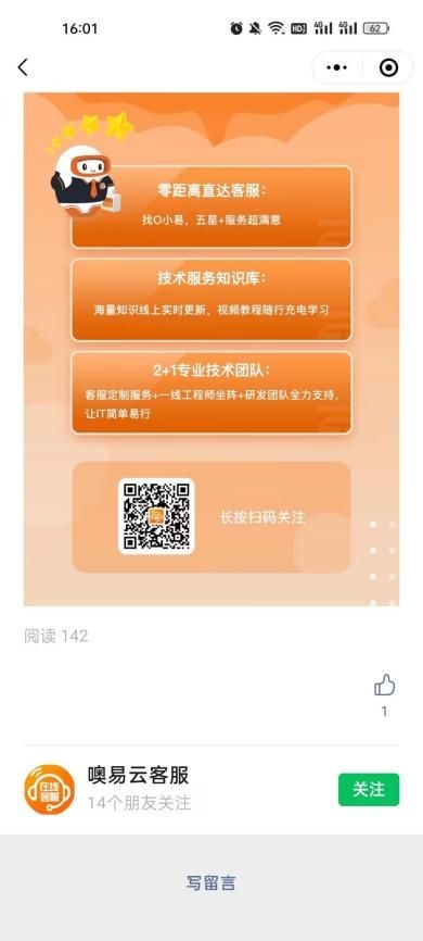 2、点击【立即关注】,即可收到“噢易云客服”公众号发送的消息通知;