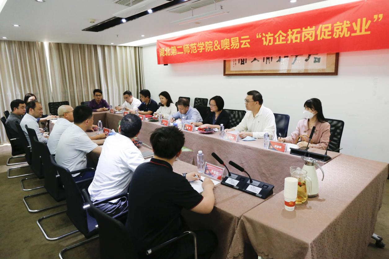 4月27日,湖北第二师范学院党委常委、副校长胡兴、计算机学院党委书记陈慧敏、计算机学院院长杨莉、计算机学院副院长王海军等一行领导至武汉噢易云计算股份有限公司调研交流,双方就“访企拓岗促就业”专项活动展开深度讨论与沟通。噢易云副总裁周毅、研发中心副总经理朱鹏等高层领导热情接待并参与此次调研交流。