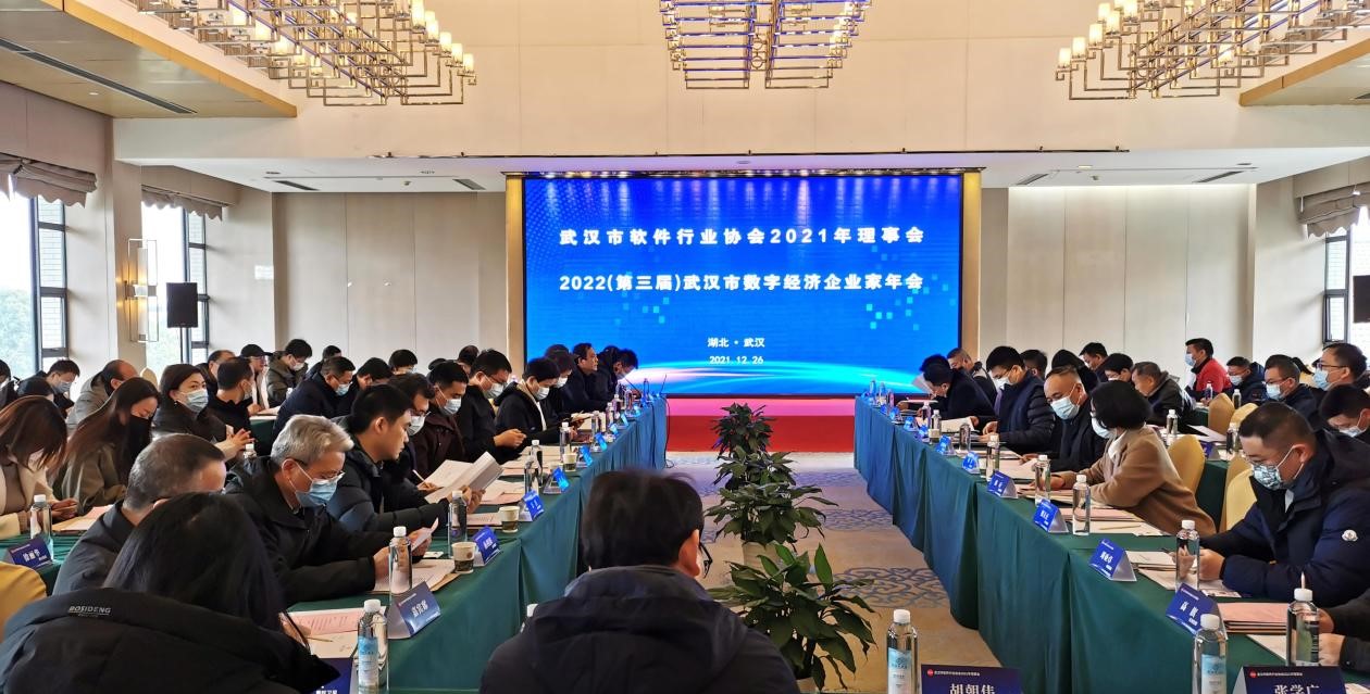 12月26日,武汉市软件行业协会2021年理事会暨2022年(第三届)武汉市数字经济企业家年会在武汉荷田大酒店盛大举行,本次会议吸引了来自省、市、区软件和信息技术服务业和数字经济相关政府主管领导、高校专家、商协会和理事单位负责人等共100位代表出席,噢易云作为武汉市软件行业协会理事单位受邀出席此次会议,共谋新时代数字经济发展新趋势。