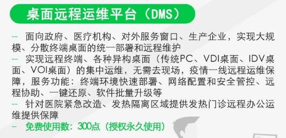 1) 面向政府、医疗机构、对外服务窗口、生产企业,实现大规模、分散终端桌面的统一部署和远程维护;