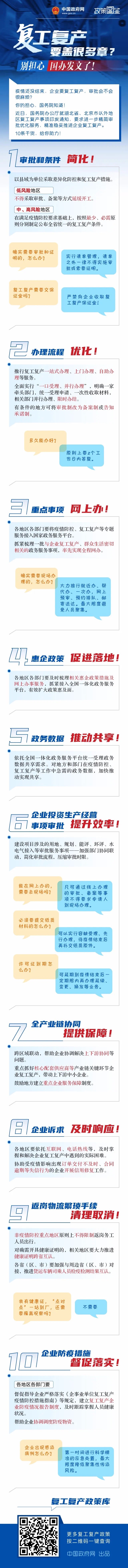 近日,国务院办公厅就湖北省、北京市以外地区复工复产事项印发通知,要求进一步精简审批优化服务,精准稳妥推进企业复工复产。