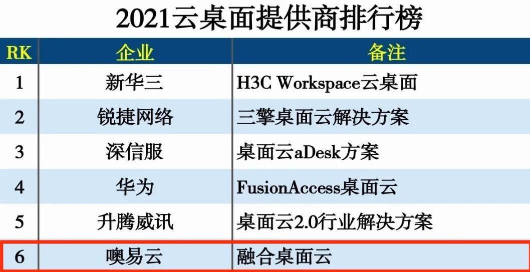 噢易云荣登“2021云桌面提供商排行榜”TOP 6
