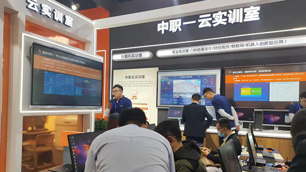 智慧物联教室现场互动讲解区(图) (一批又一批老师至智慧物联教室现场互动交流,了解新一代信息技术在教室基础设施中的应用) 三、云实训室,提供更便捷的实训教学体验 职业教育是国民教育体系和人力资源开发的重要组成部分,肩负着培养多样化人才、传承技术技能、促进就业创业的重要职责。大力提升中等职业实训教学质量,建设高水平专业化中职云实训室大有可为。 噢易中职云实训室方案采用VOI架构云桌面,实现云端管控,计算转移,应用于计算机公共实训室、图形设计类实训室、财经商贸类实训室、创新型应用(物联网、工业机器人、虚拟仿真、虚拟现实)实训室等环境,协助构建理实⼀体化教学场景,为师生提供流畅的实验实训使用体验。