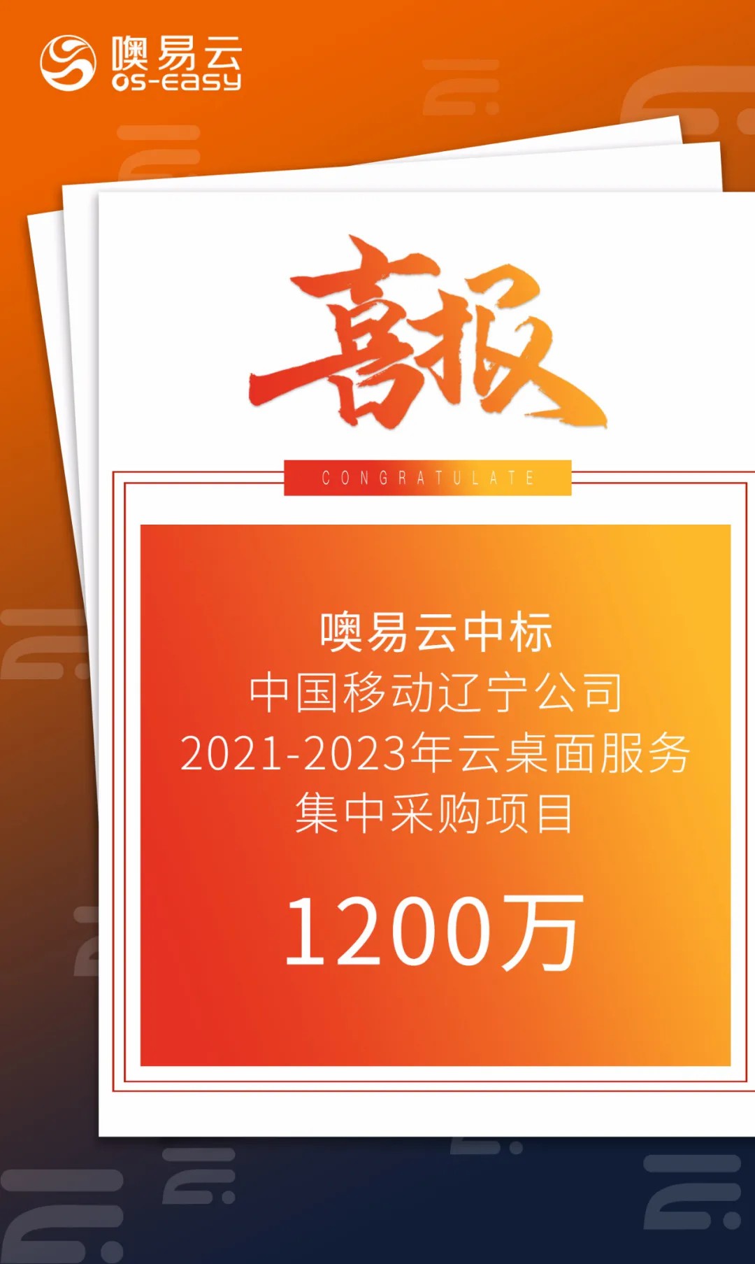 噢易云成功入围中国移动辽宁公司2021-2023年云桌面服务采购项目