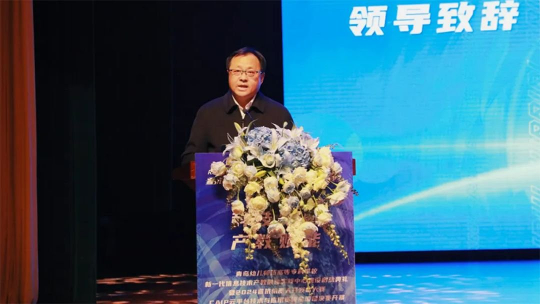 青岛幼儿师范高等专科学校党委书记李岷代表学校致欢迎辞。他表示青岛幼儿师范高等专科学校作为承办单位,将严格按照赛项规程,精心组织、周密安排,确保赛事的公平、公正、公开,为参赛选手提供展示才华、交流学习的平台。将以此次活动为契机,系统推进专业、课程、教材、教师、实习实训改革,建设集实践教学、真实生产、技术服务功能于一体的高水平新一代信息技术产教融合实践中心,为培养高素质技术技能型信创产业人才,推动数字中国、网络强国建设做出积极贡献。