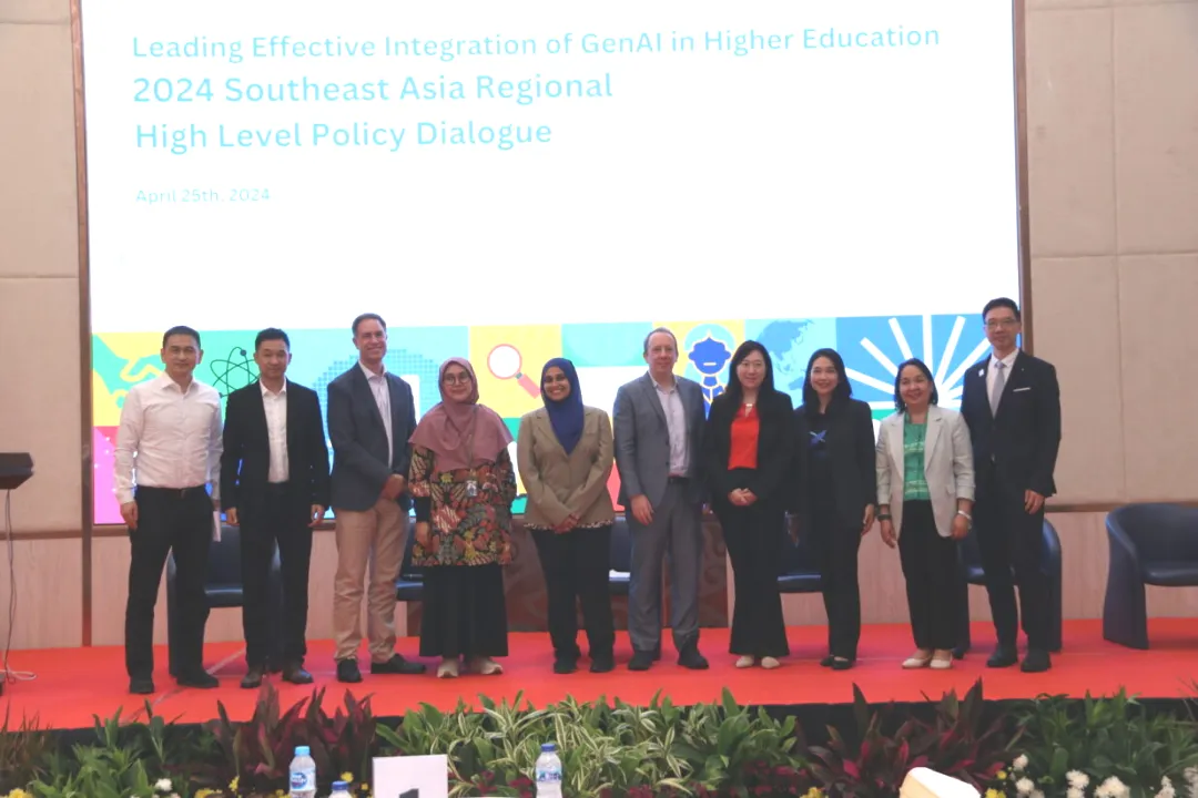 2024年4月25日,“引领生成式人工智能与高等教育的高效融合”2024年东南亚地区高级别政策对话会(以下简称“政策对话会”)在印度尼西亚雅加达成功举办。政策对话会由联合国教科文组织高等教育创新中心(中国深圳)(以下简称“创新中心”)、印度尼西亚网络教育学院 (IIOE印度尼西亚国家中心)、联合国教科文组织曼谷多部门区域办事处、联合国教科文组织雅加达多部门区域办事处共同主办,东南亚国家联盟秘书处、东南亚教育部长组织秘书处协办,受到亚洲开发银行和金山软件公司的赞助。政策对话会邀请了教育部官员 、国际组织代表、高校领导、专家学者、企业代表等高等教育利益相关方,就生成式人工智能(Generative Artificial Intelligence,以下简称“GenAI”)融入高等教育、教师专业发展等议题分享经验、凝聚共识。来自中国、印度尼西亚、马来西亚、菲律宾、泰国、柬埔寨、缅甸、越南的近200位高等教育领导和利益相关方通过线上和线下形式参会。