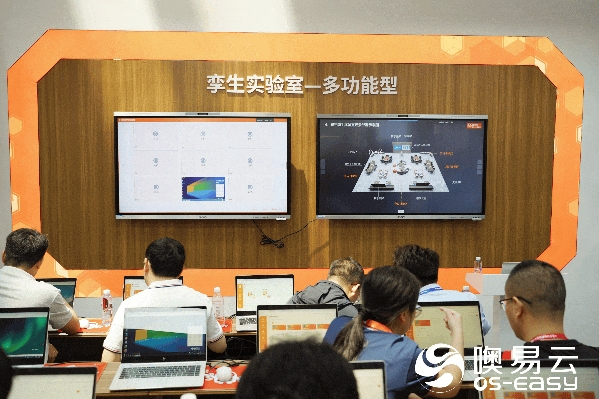 沉浸式模拟阶梯教室、开放式教学空间、个人笔记本接入、全无线覆盖……噢易孪生实验室全新亮相,惊艳全场,吸引大批参会嘉宾落座体验。噢易孪生实验室作为噢易云重磅推出的全新产品,是计算机实验室数字化新形态,该产品通过数字孪生、大数据、移动互联网、云计算等信息化技术,将物理实验室孪生到线上,形成虚拟实验室,师生使用笔记本,通过无线网络随时随地接入线上实验室环境。现已推出标准型、多功能型、开放型、信创型等形态,以信息化技术帮助学校构建数字化、个性化、开放型的实验教学新模式。