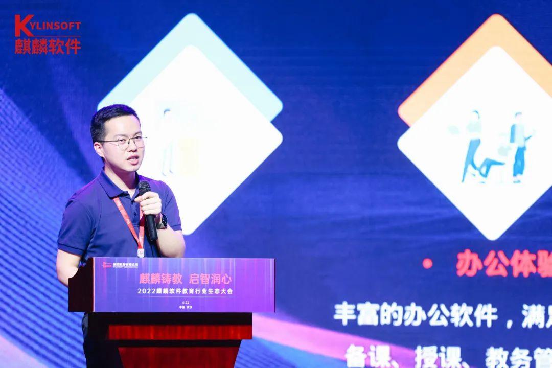麒麟软件解决方案总监龚阳熠作《麒麟软件赋能教育应用创新与信息安全》主题分享。随着我国大力发展网信产业,各地纷纷响应发展教育行业自主创新的号召。在教育信息化 2.0 热潮下,麒麟软件为教育市场的创新突破开启了新局面。