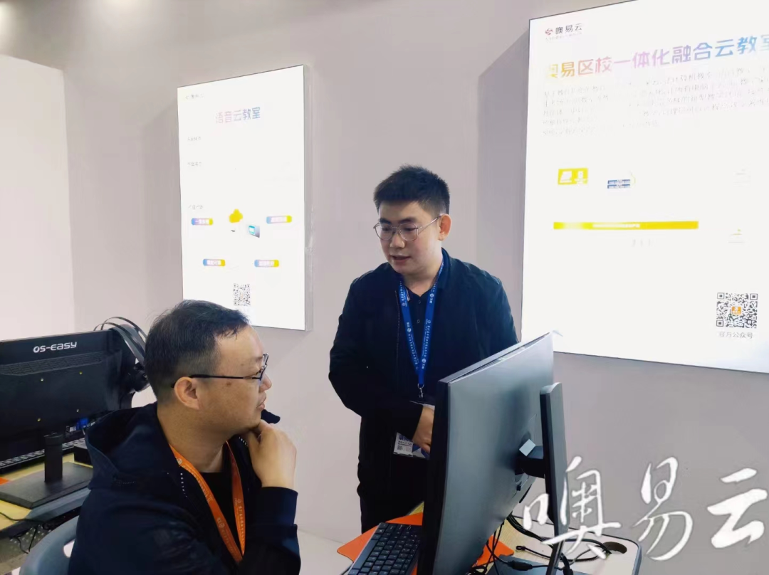 噢易云作为专业的桌面云方案提供商,将新一代信息技术与教育教学深度融合,携孪生教室TSpace、语音云教室、信创云教室、新基建智慧实验室、实验室智慧服务平台LISS、云终端等多款产品方案亮相,为用户提供智慧化和数字化互动体验空间。