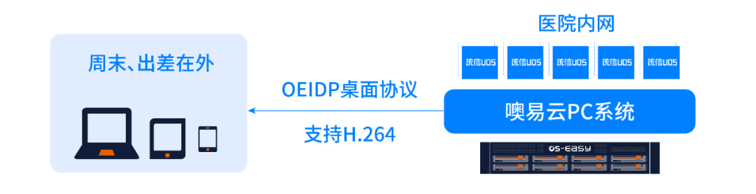 全面适配国产终端:全面兼容适配国产化终端(兆芯、海光、飞腾、龙芯、海思麒麟芯片)部署;提供噢易云应用软件解决国产应用体验不佳及无法安装等难题。