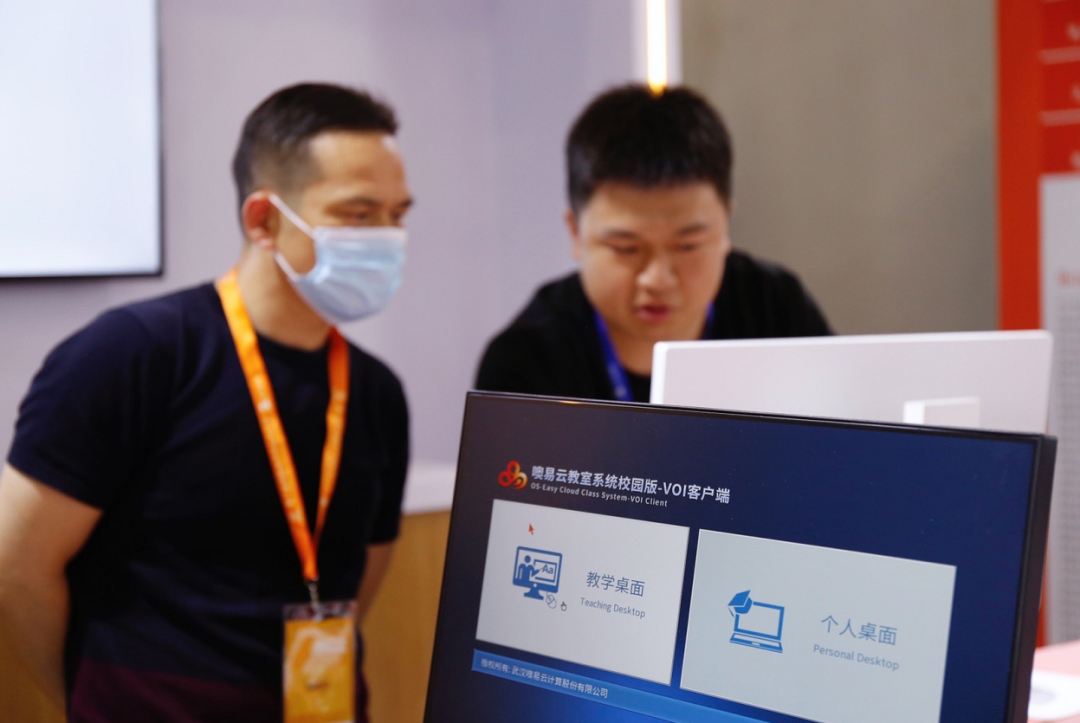 目前,教育信息化的浪潮推动着教育装备更新升级,尤其是云计算、大数据、物联网、人工智能等新一代信息技术与教育教学的深度融合,为教育装备产业带来了巨大的发展空间。在B5馆059号展位现场,噢易云与来自全国各地的老师和信息化建设专家在智慧云教室、融合桌面云、远程线上教学和桌面数据可视化展示平台等方向的产品方案进行了交流探讨和体验,现场人气爆棚!