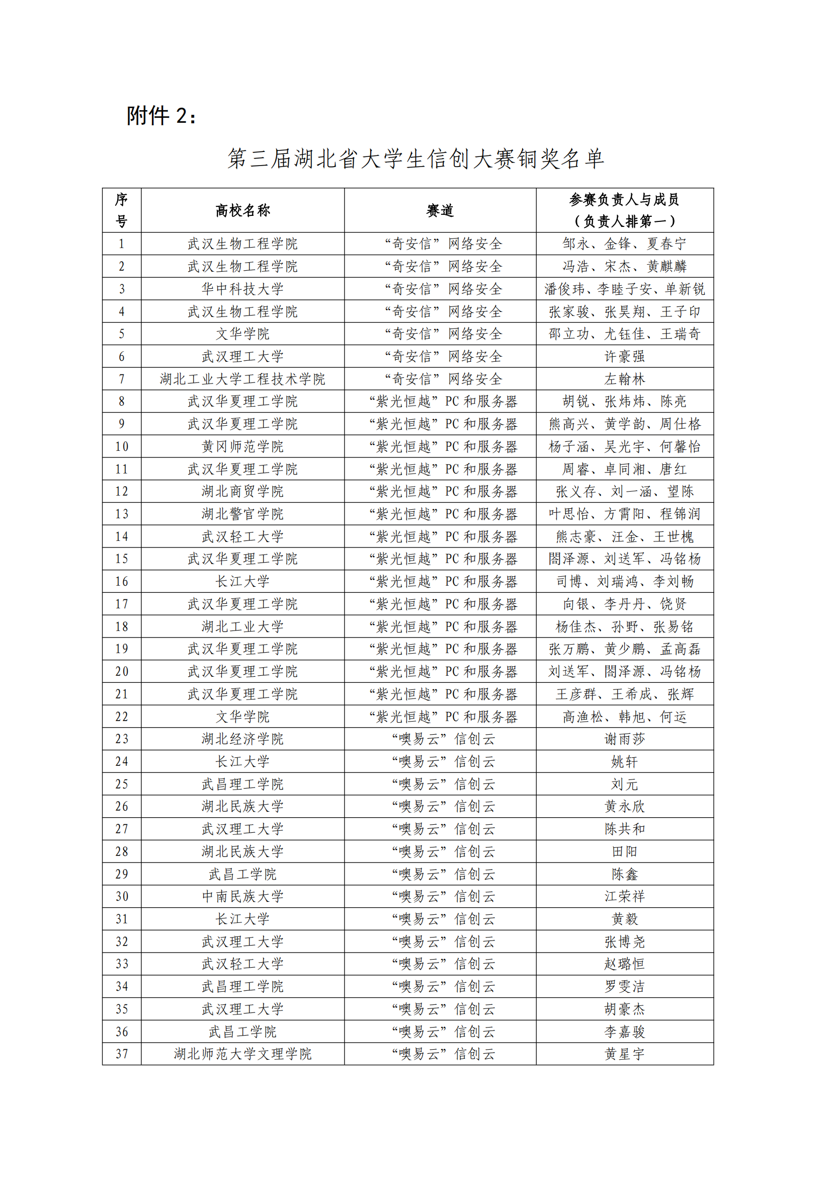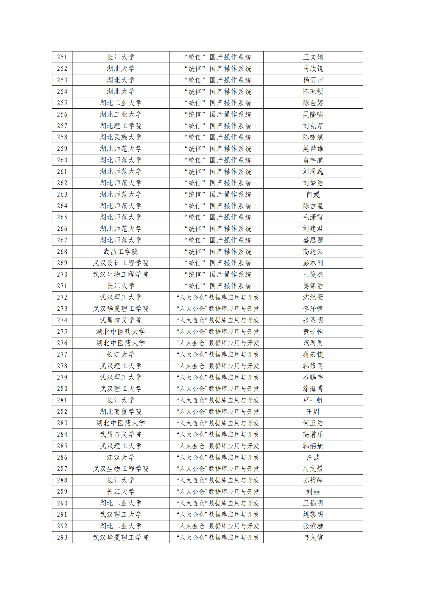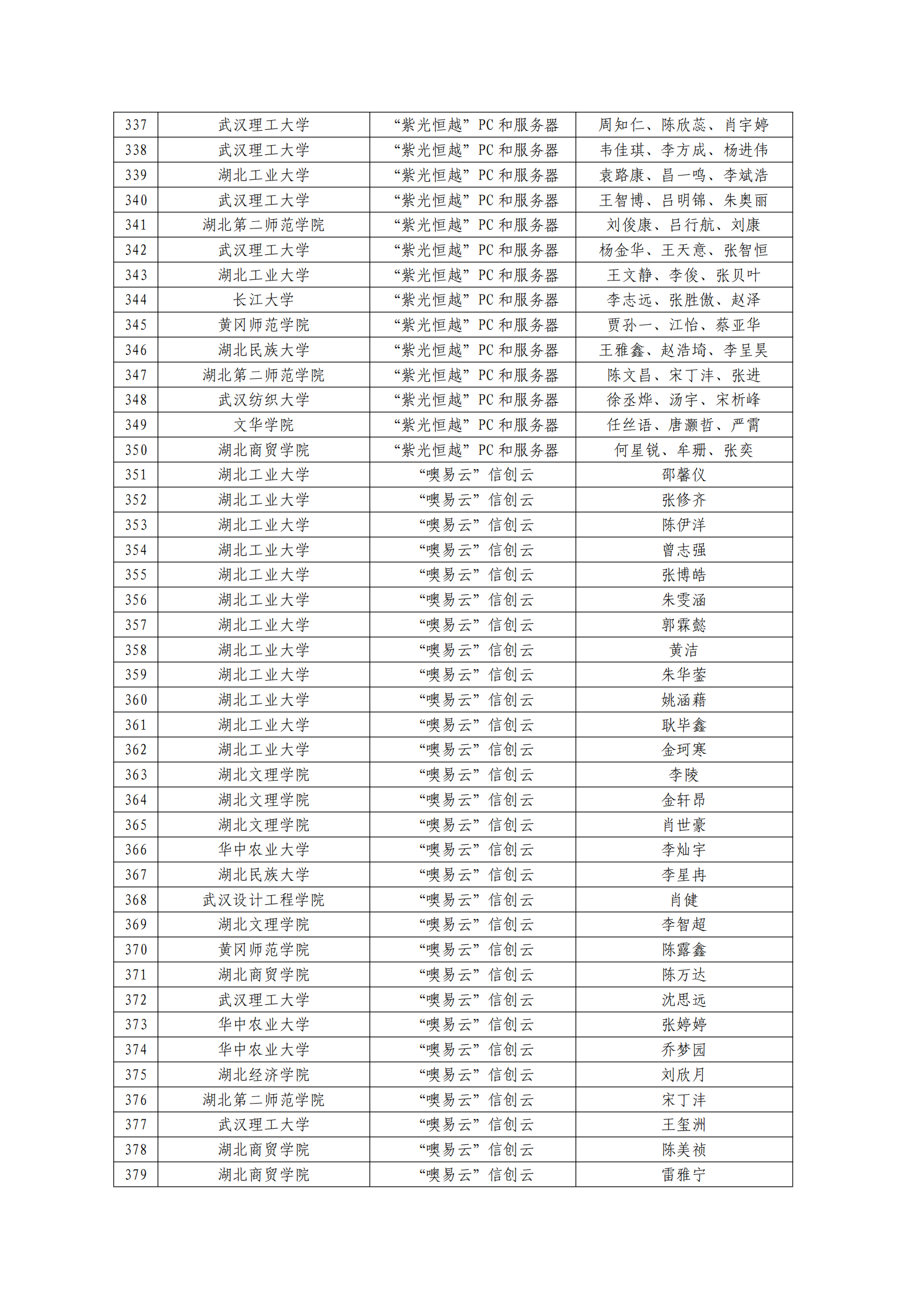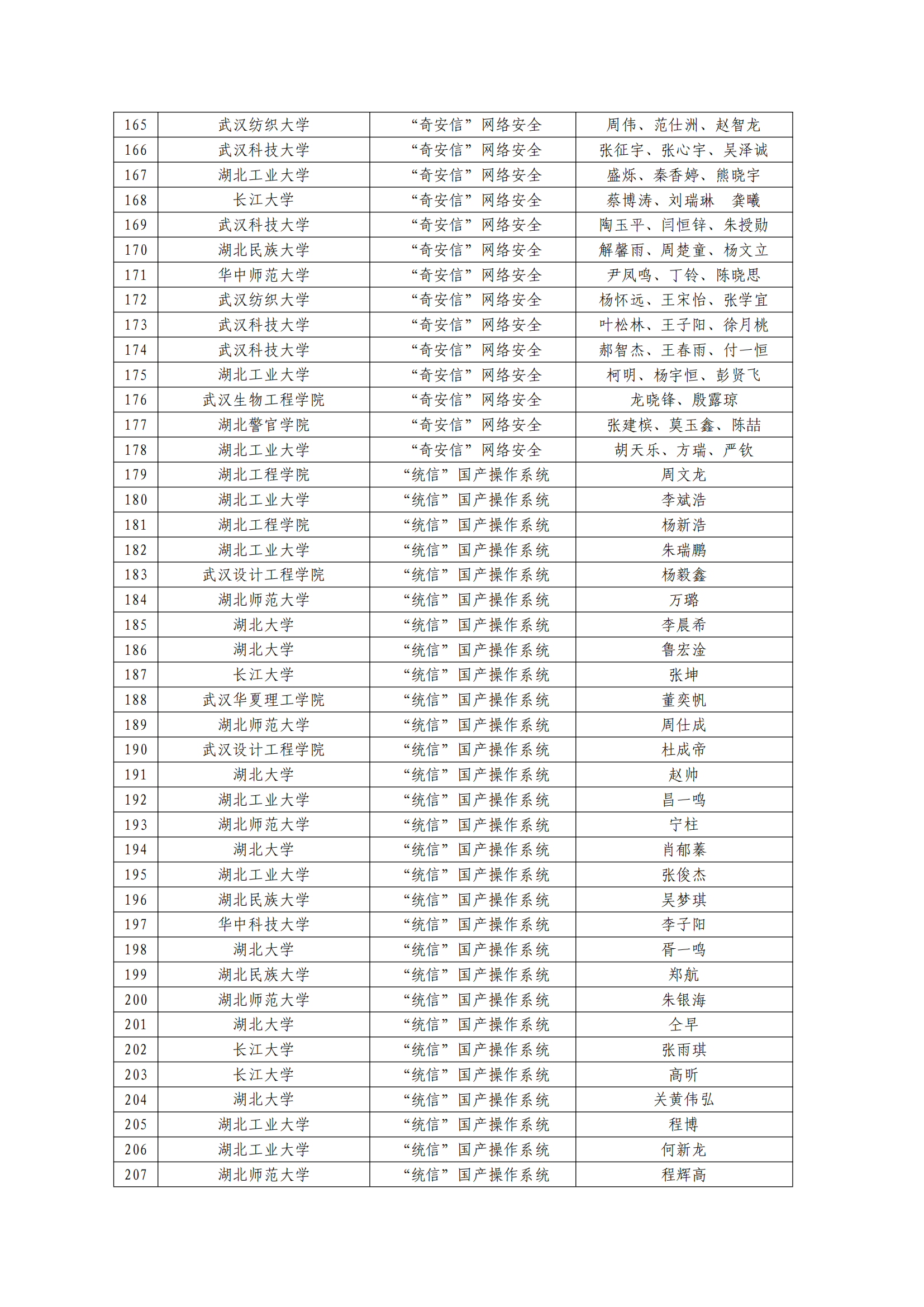 关于对第三届湖北省大学生信创大赛获奖名单进行公示的通知(第5号)