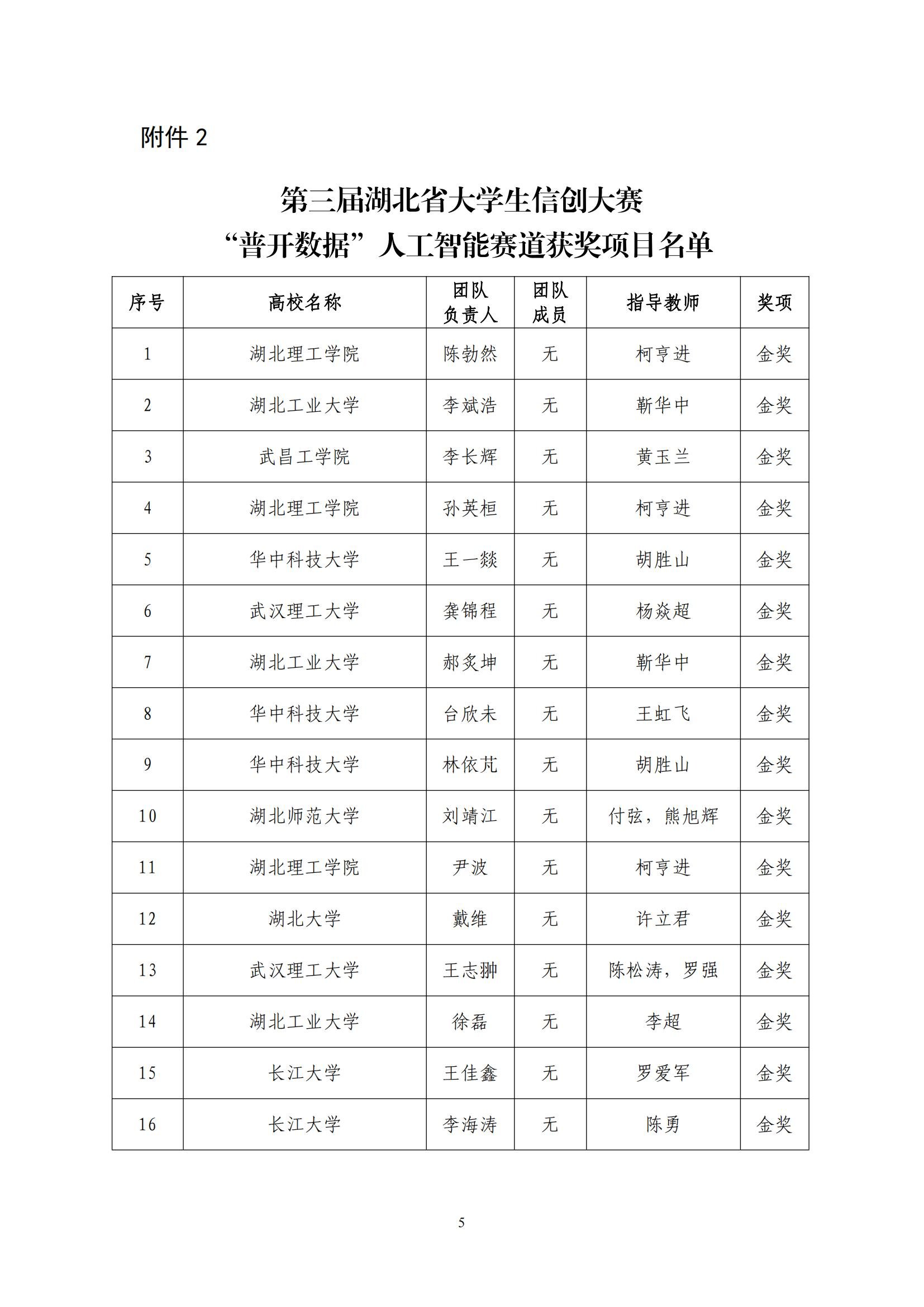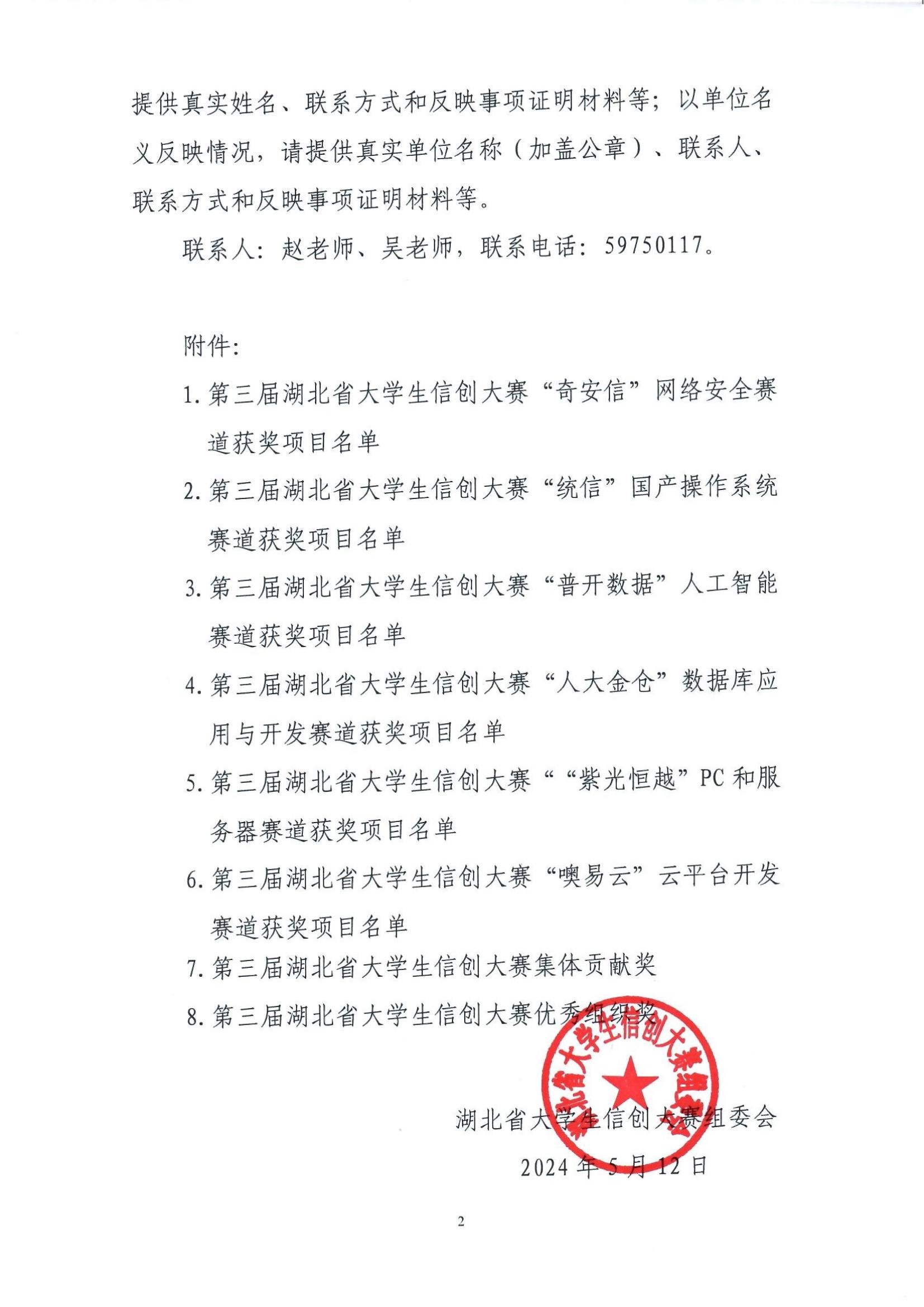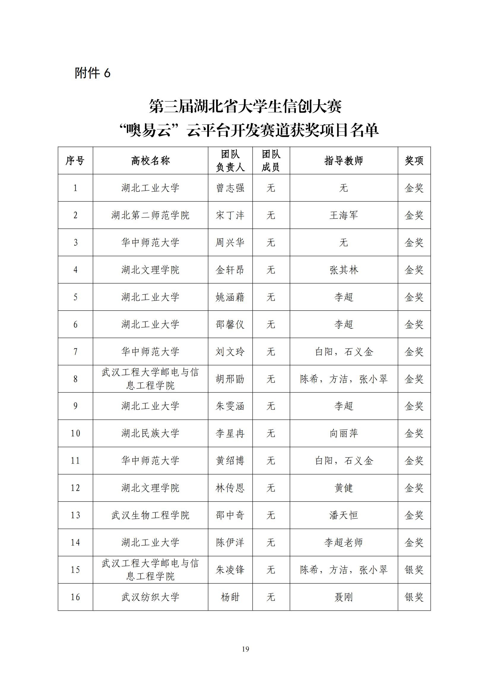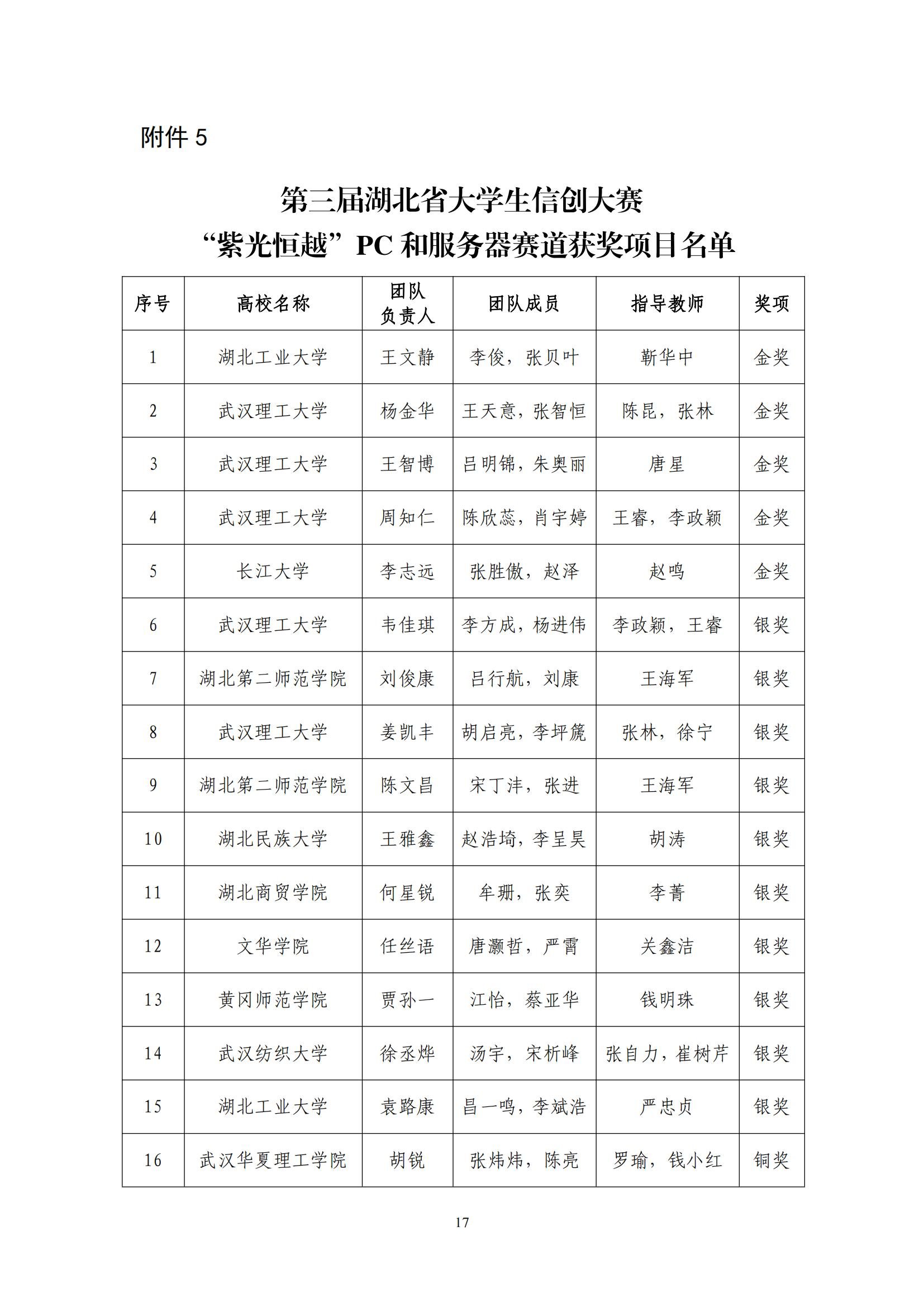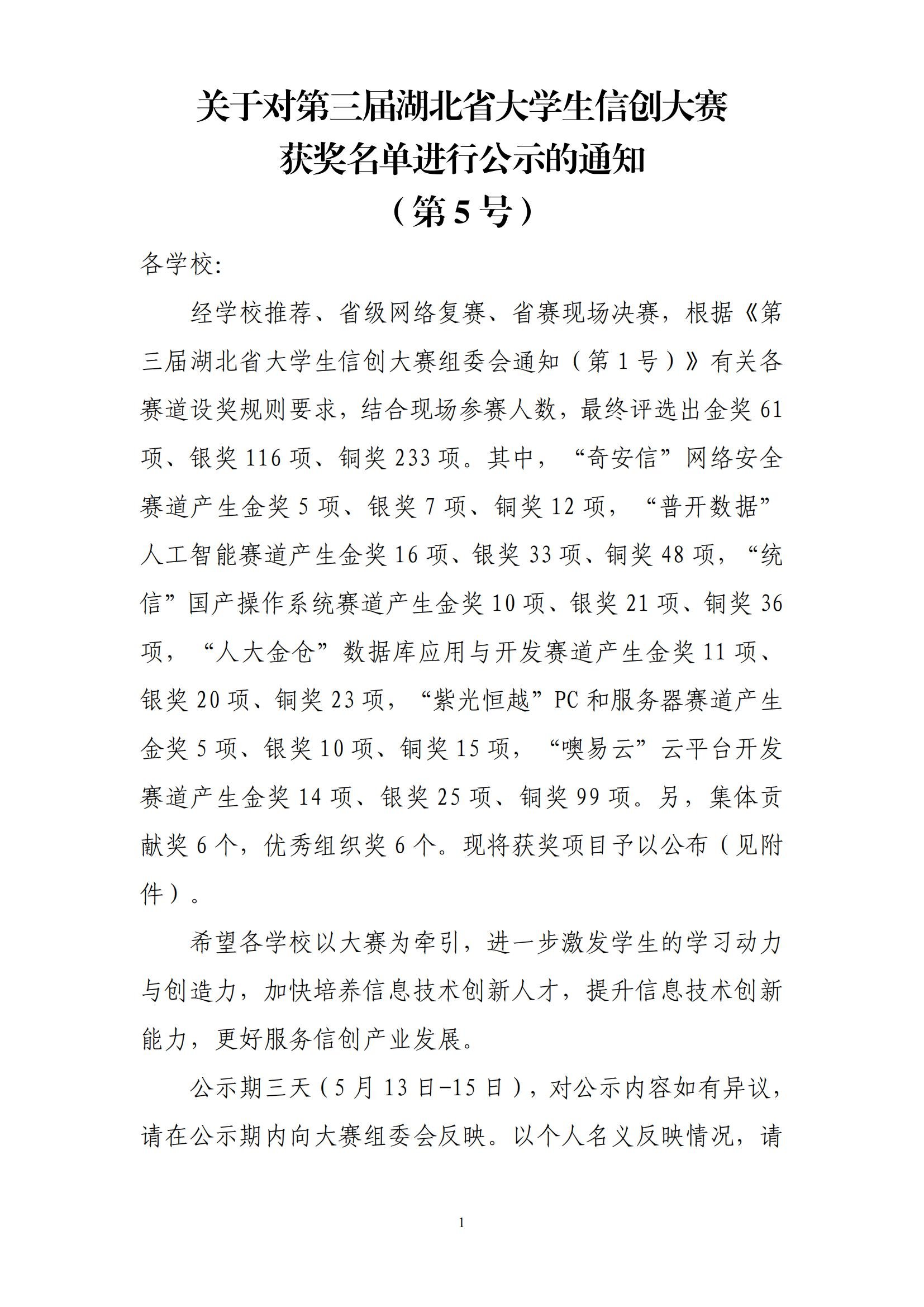 关于对第三届湖北省大学生信创大赛获奖名单进行公示的通知(第5号)
