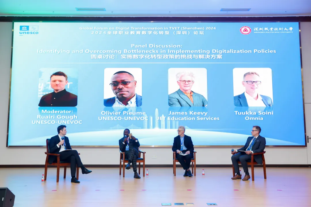 本次论坛由联合国教科文组织国际职教中心(UNESCO-UNEVOC)、联合国教科文组织东亚多部门地区办事处及深职大共同主办。来自35个国家的政府部门、教育机构、行业企业和国际组织的近130位代表出席论坛,聚焦“面向人工智能时代的职业教育转型”,共同探讨全球职业教育数字化治理与人工智能技术融合的路径,分享各国在数字能力建设、课程改革及科技助力校企合作方面的最佳实践,推动构建一个更具韧性和活力的全球职业教育体系。