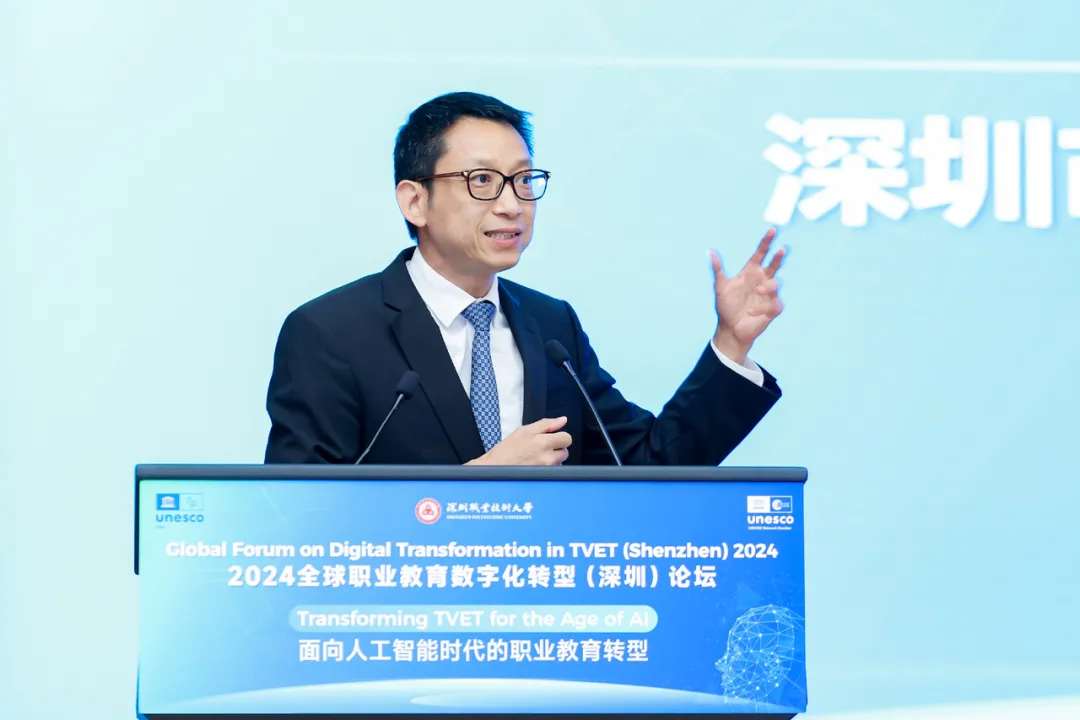 深圳市教育局主任督学蔡茂洲表示,深圳作为科技创新之城,将持续推进职业教育与数字经济的深度融合,支持城市的创新和数字人才发展。