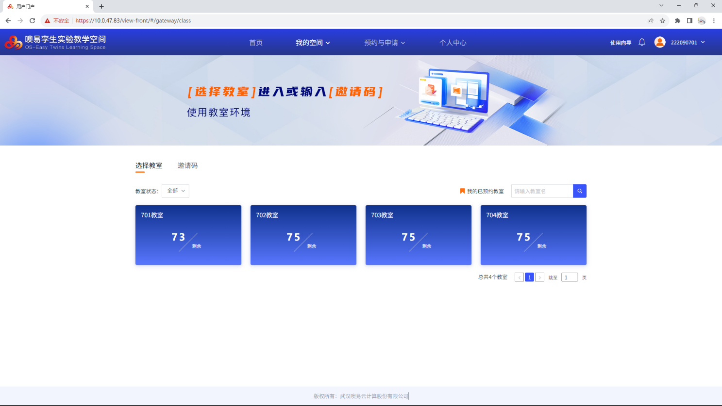 内蒙古财经大学经管实验中心采用TSpace方案构建满足400点并发访问的云端大资源中心,建设4间线上虚拟实验室,承载用友系统、数据结构-Java等专业实践课的教学实践,学生可通过个人电脑和机房终端随时随地自由访问线上教室和实训课桌面。同时在寒暑假期间,为科研、创新实验及竞赛等活动提供高效便捷的环境支持。