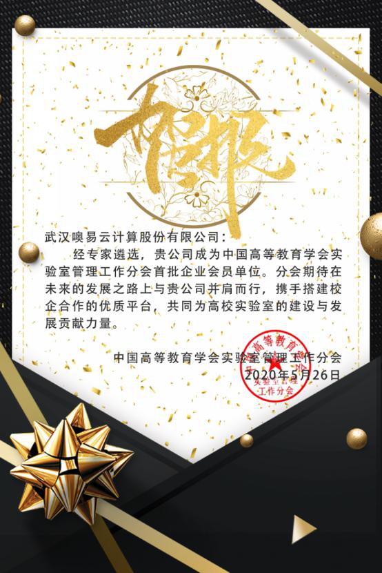 2020年5月26日,噢易云成为中国高等教育教育学会实验室管理工作分会首批企业会员单位。
