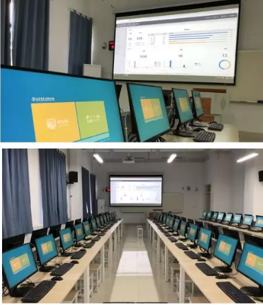 新校区总体规划,其中1000点VDI授权,800点用于教学,200点授权用于教师移动办公。教学桌面含两个考试、两个教学系统,教室内并发开机进入Win7桌面只须1分钟。另公共机房教师机与200间多媒体教室均采用VOI架构,外设全兼容,断网可用。