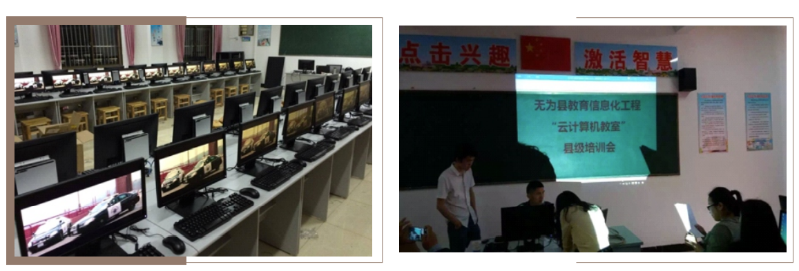 无为县教育局云教室系统建设涉及到下属84所中小学,每所学校需要建设1间云教室,总计84间云教室,每所学校教室规模不等,总计3688点云桌面。