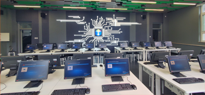 学校以科技教育为突破口,2021年携手噢易云部署45点云教室系统,新建1间计算机微机室,满足全校2500余人学生日常计算机基础课程,配套多媒体网络教室软件,安装常用教学应用软件,建设标准化云教室,提升教师和学生用机体验。