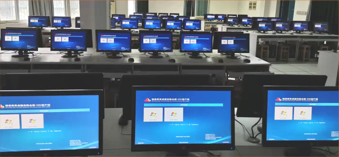 针对南校区网络技术服务部824台多批次采购的不同品牌电脑,统一部署VOI桌面,采用特有智能驱动技术解决不同批次、不同配置的异构终端系统的兼容问题。直接在管理平台上通过虚拟机远程镜像,部署、更新所有终端,实现3间公共机房和6间语音机房统一部署管理。
