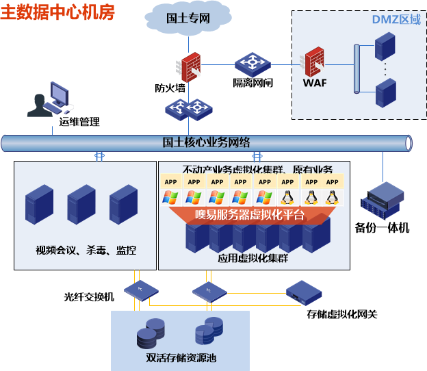 7、 充分考虑数据备份容灾需求,利用备份一体机实现虚拟化平台、数据层、应用层备份,并利用备份一体机自带的CDP保护不动产应用、一张图等关键应用,解决最坏情况下的业务可用。