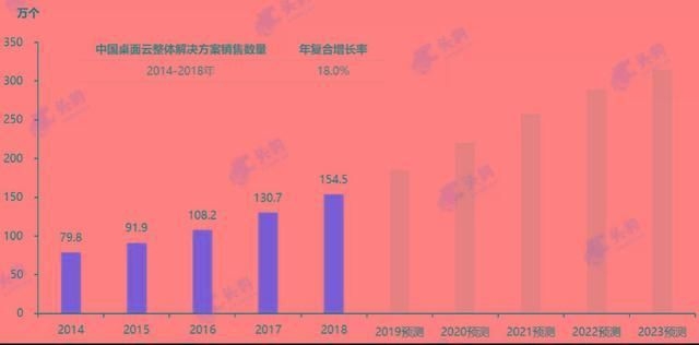 预计在 2023 年市场规模将达到 385 万个桌面,2018 年至 2023 年年均复合增长率将维持 20%。