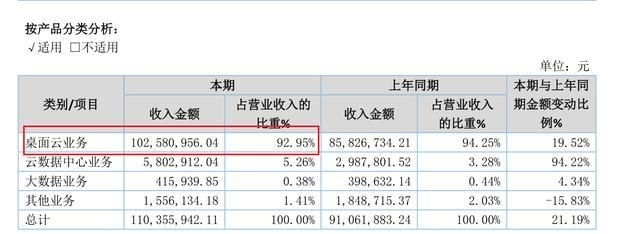 噢易云2019年桌面云业务增长了19%,利润增长了192.77%,到了1222.22万。