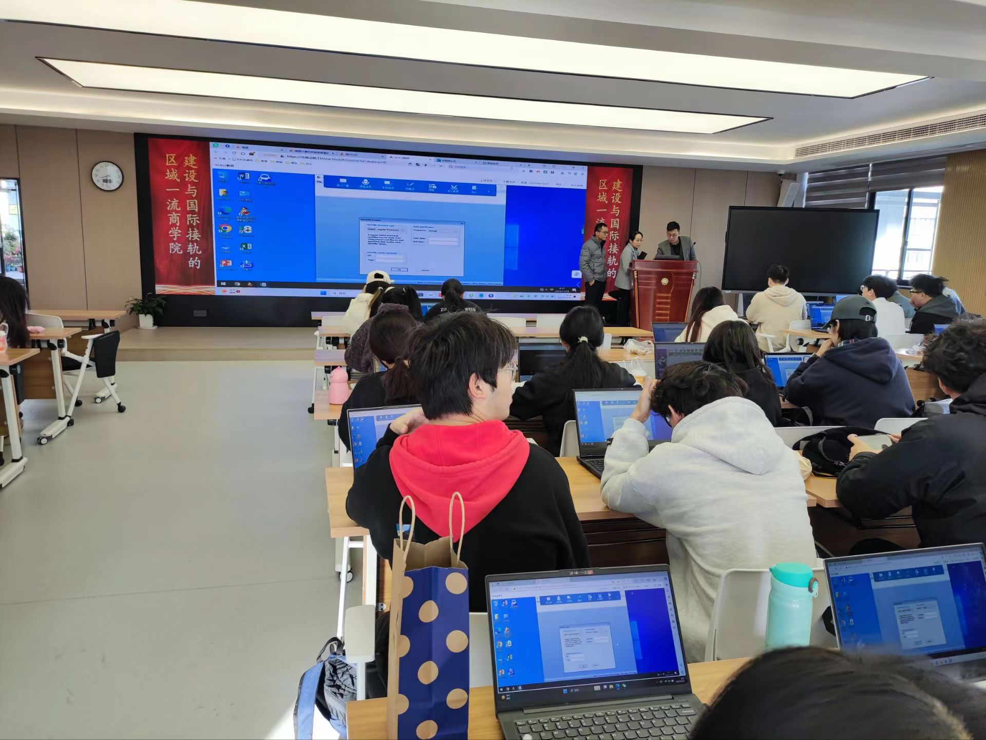 浙大宁波理工学院商学院数字商科实验中心致力于培养学生在数字商务和商科技术领域的专业知识和技能。学院携手噢易云部署了100点噢易孪生实验室,建设去端化教室,教师机和学生机都是通过笔记本接入纯云端虚拟教室的云端桌面,所有桌面连接稳定,同时亦基于网页桌面开展了屏幕广播教学,广播画面流畅。