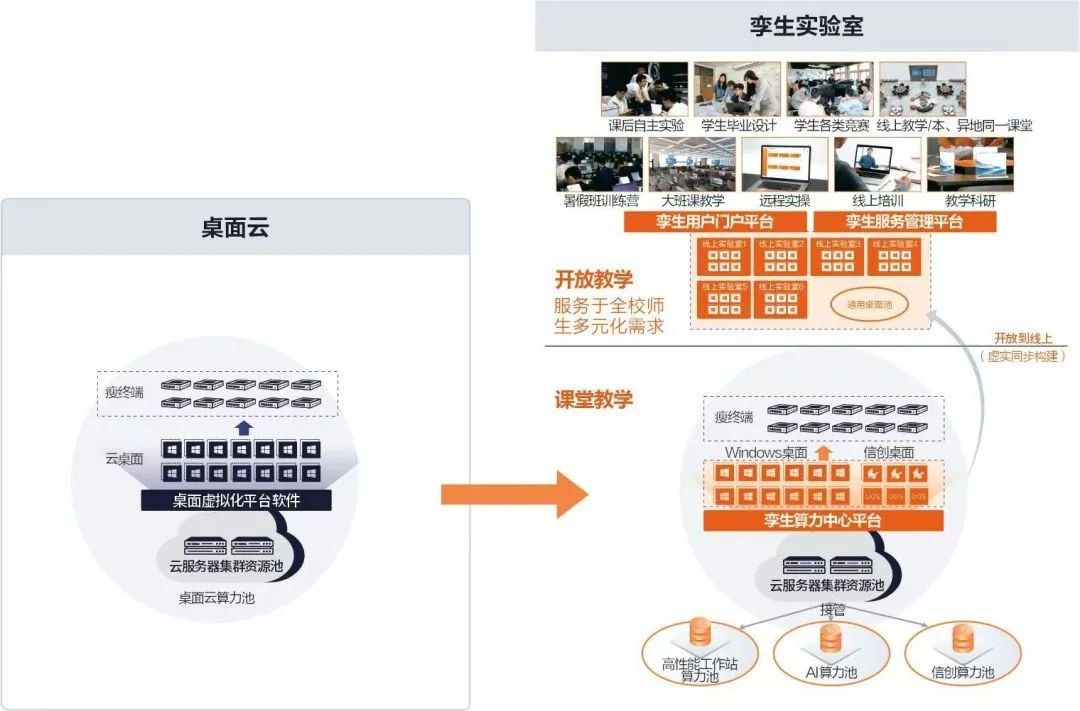 1、无缝接管现有桌面云算力池,支持现有专业实验环境一键开放