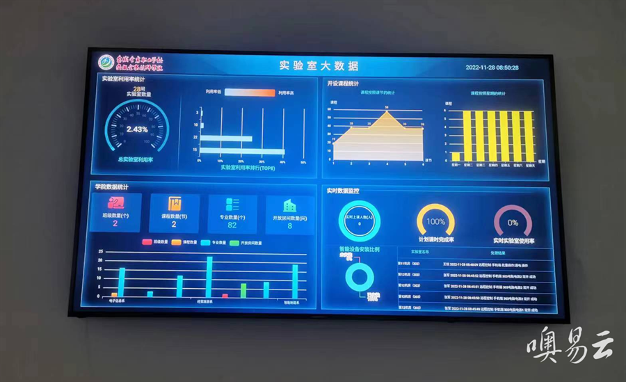 为提升高校实验教学管理水平和质量,最大限度利用好实验教学环境,打造信息化教学建设的综合实验室。新疆财经大学实践实验教学中心共建设60间智慧实验室,以云桌面为核心,集智慧门禁、电子课牌、教学录屏、监控、中央控制、大数据分析等信息化系统为一体,打造集中统一管理与灵活调度相结合的现代化实验教学综合管理平台。