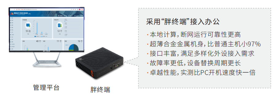 针对9-11代Intel新平台不能直接安装Win7系统问题,通过IDV架构保障终端与HIS业务系统完美兼容,基于融合模板统一管理,不同架构终端基于同一个镜像模板编辑使用。