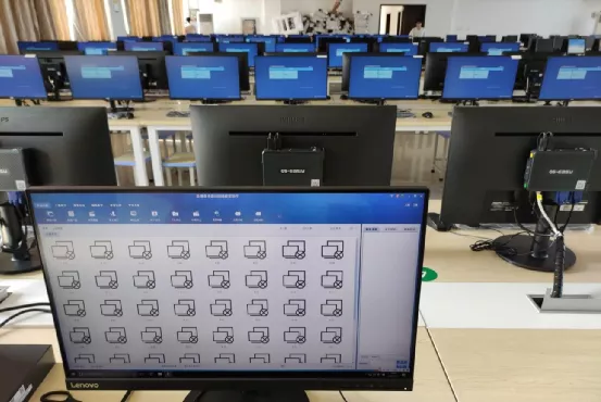 学校计算机公共机房分别部署120点VDI版桌面云和63点VOI分布式桌面云。支持对不同批次不同配置的异构终端系统进行统一管理,且兼容高拍仪在教学、办公中的使用。
