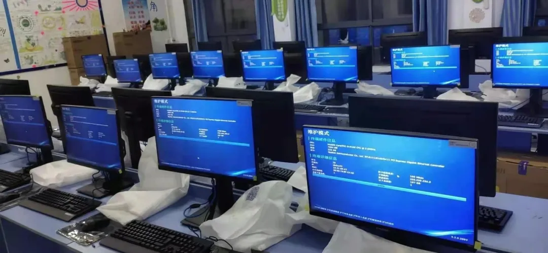 4台高性能服务器构成资源池,每个终端交付三个桌面,完全满足学校日常教学和理化生学科考试场景需求,同时兼备微机室、英语听力口语教室、通用信息技术及其他学科考场功能。