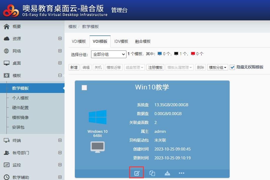 2、选择模板---教学模板,点击控制台,编辑模板。