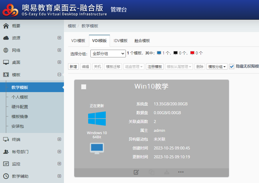 1、模板更新完成后,需要给终端学生机同步下发桌面,打开终端管理,全选终端,点击部署,点击进入维护模式。