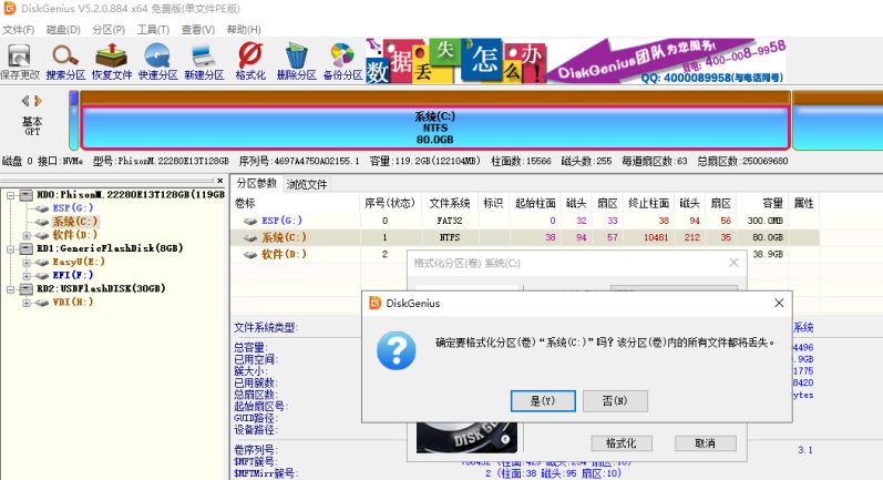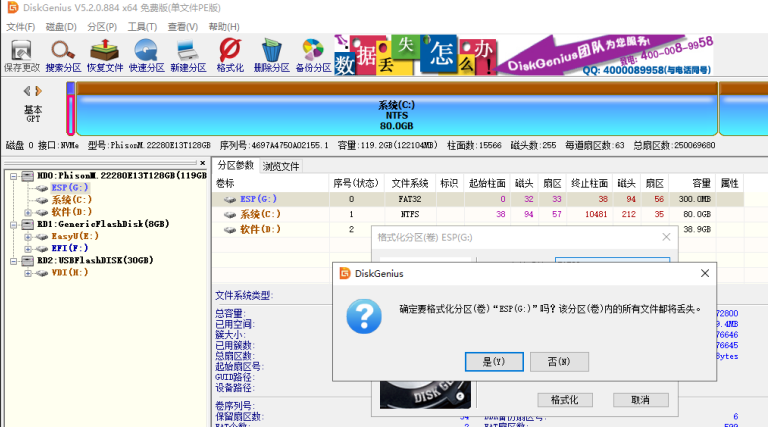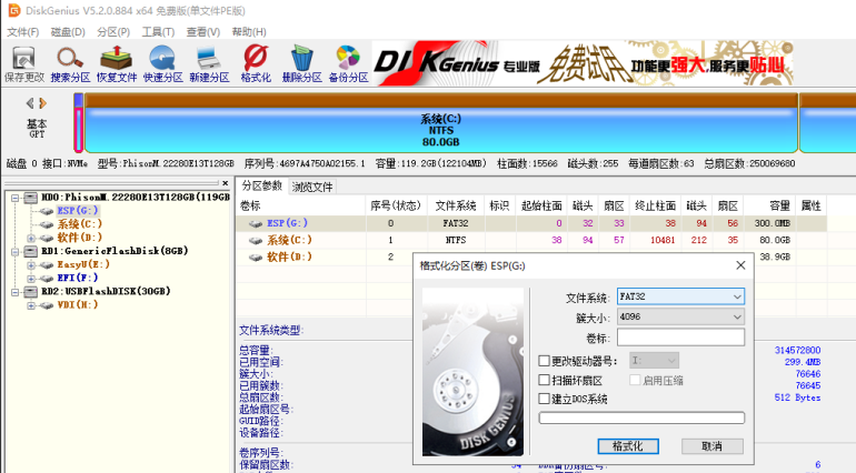 ④ ESP分区默认Fat32格式化,系统分区默认NTFS格式化;