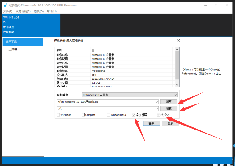 ④ 选择要恢复的系统安装包ISO文件,选择恢复的系统盘盘符,勾选添加引导和格式化,点击确定。
