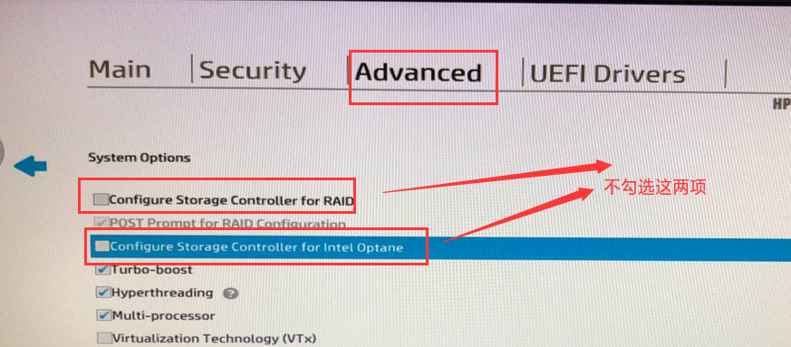 4) 、BIOS里设置不对,启用了raid模式,需关闭,如HP机器。即硬盘模式不能是raid模式,要关闭raid模式,配置为AHCI模式。如下HP、联想等品牌机器的硬盘模式相关设置